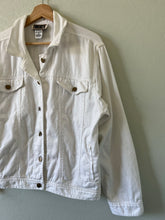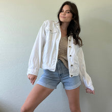 Cool vintage white-colored jean jacket from the 90s by Forenza. Great for all seasons, making the perfect accessory. In good vintage condition minus a few small spots (see photos).
