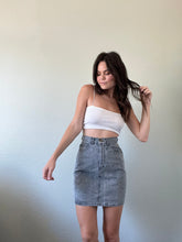 Cool black-colored vintage denim mini skirt from the 90s with a standard zip-fly and pockets. In good vintage condition with slight distressing on the front (see photo #10).