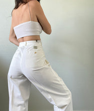 Cute cream-colored vintage deadstock trousers from the 90s with a high-waisted fit and a standard zip fly and pockets. In good vintage condition.
