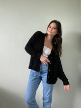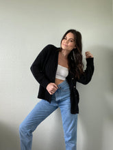 Cute black-colored cardigan sweater from the 90s with a comfortable slouchy fit. In good vintage condition with some wear on the cuff.