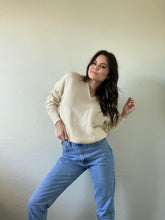 Cute neutral-colored v neck sweater from the 90s, great to pair with just about anything. In good vintage condition. Unisex item.
